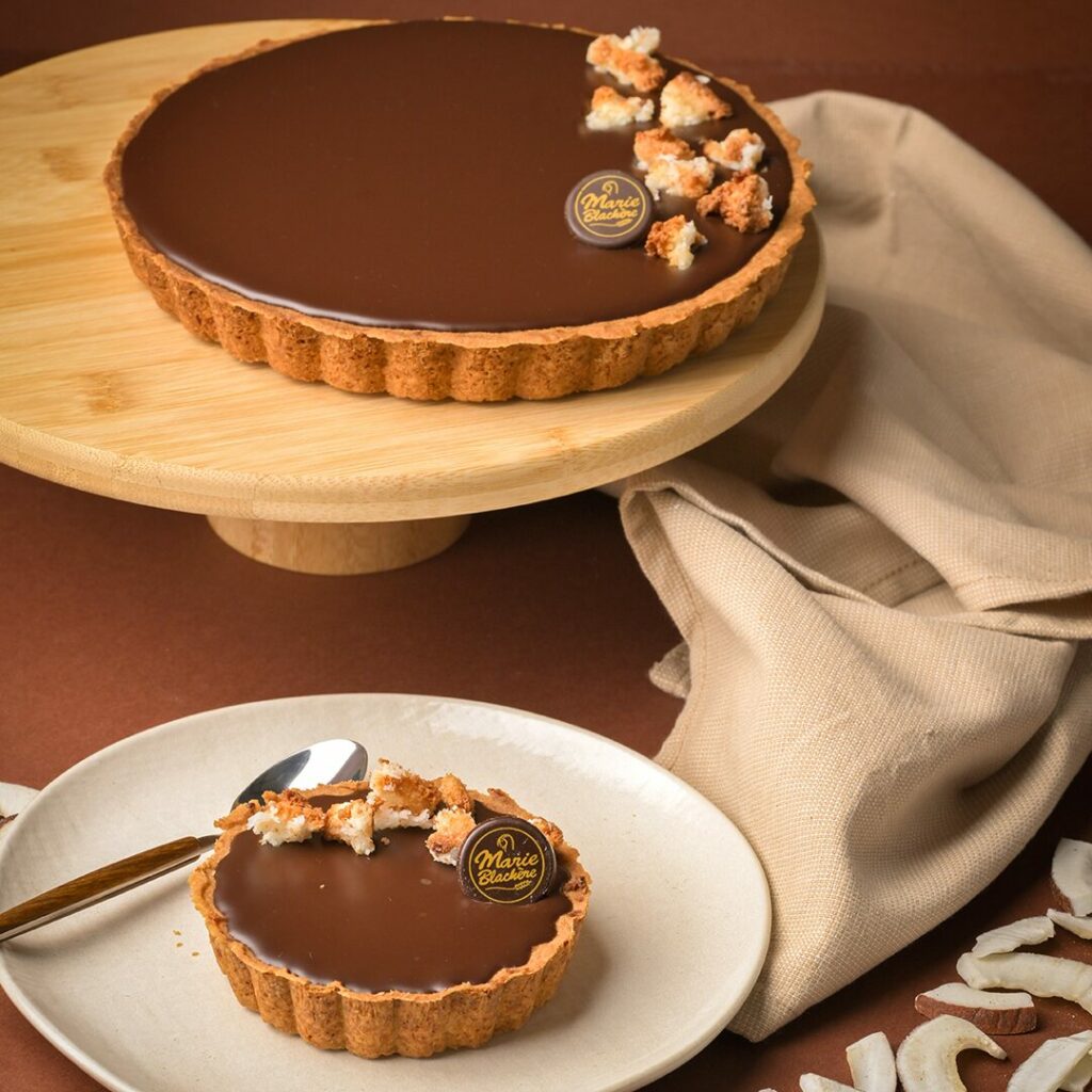 Une tarte gourmande qui associe chocolat et noix de coco pour un dessert plein de douceur.🥥