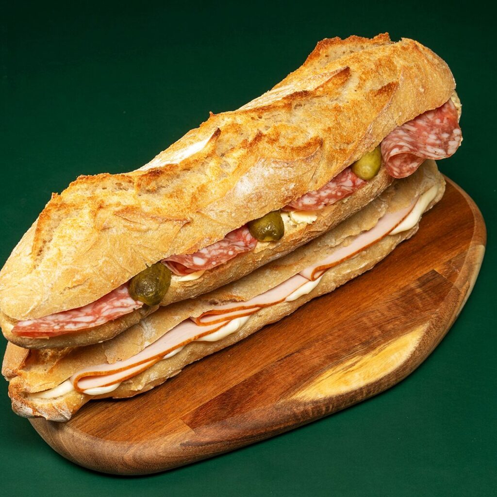 Beurre, rosette du Cantal et cornichon dans une baguette de Marie : du goût, du caractère.