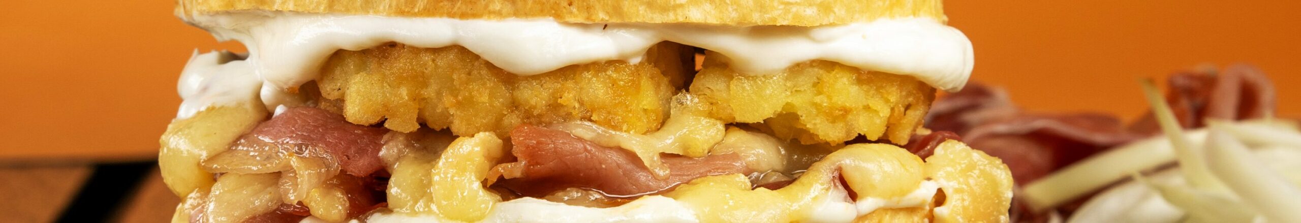 Le fromage à tartiflette fond généreusement sur des oignons doucement caramélisés, tandis que les röstis dorés apportent une touche croquante et rustique qui contraste parfaitement avec la douceur du reste.🧀🍔