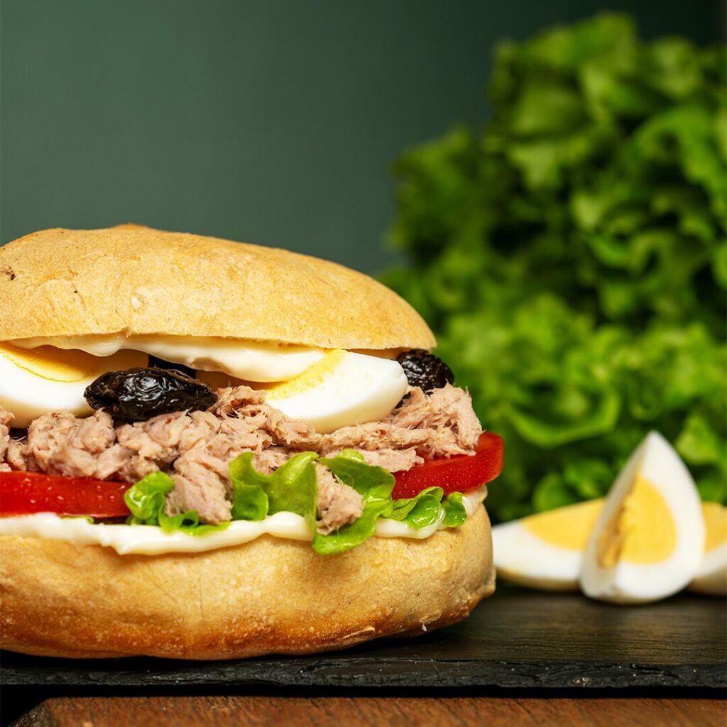 Entre deux tranches de pain moelleux se mêlent des tomates juteuses, une salade croquante, du thon savoureux, des œufs fondants et des olives parfumées.🥚🫒🥪