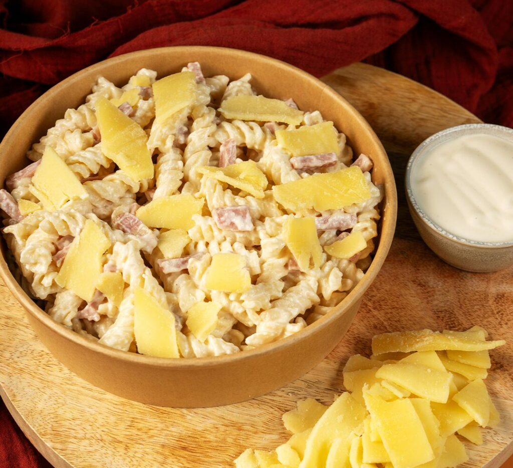Des fusillis, enrobés d’une sauce carbonara riche et onctueuse, offrant une texture fondante à souhait 😋.